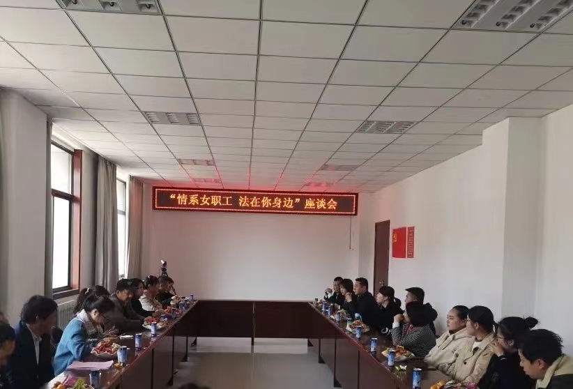 在“三八”國際婦女節(jié)來臨之際,為進(jìn)一步提升女職工法律意識,切實(shí)維護(hù)廣大女性自身合法權(quán)益。3月8日上午,公司工會召開“情系女職工  法在你身邊”主題座談會。會上,集中觀看了女職工“四期”的健康防治、婦女權(quán)益保障措施等方面的內(nèi)容。引導(dǎo)廣大女職工增強(qiáng)知法、守法、用法的法律意識和維權(quán)意識,營造一個(gè)關(guān)愛婦女、尊敬婦女和共同維護(hù)婦女權(quán)益的良好企業(yè)氛圍。